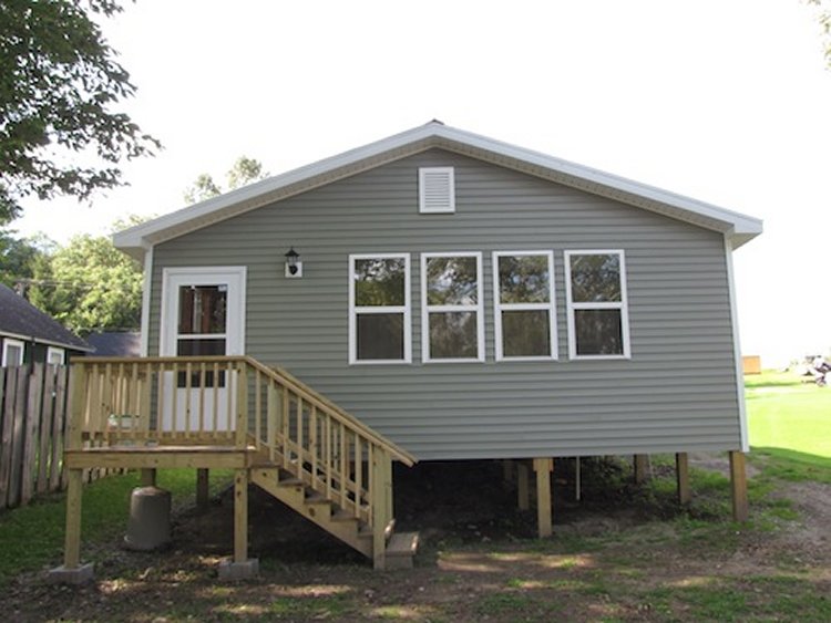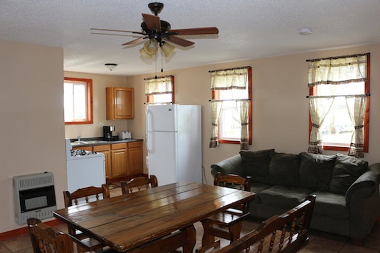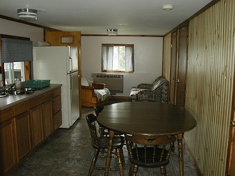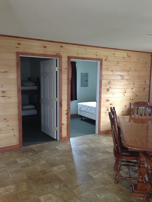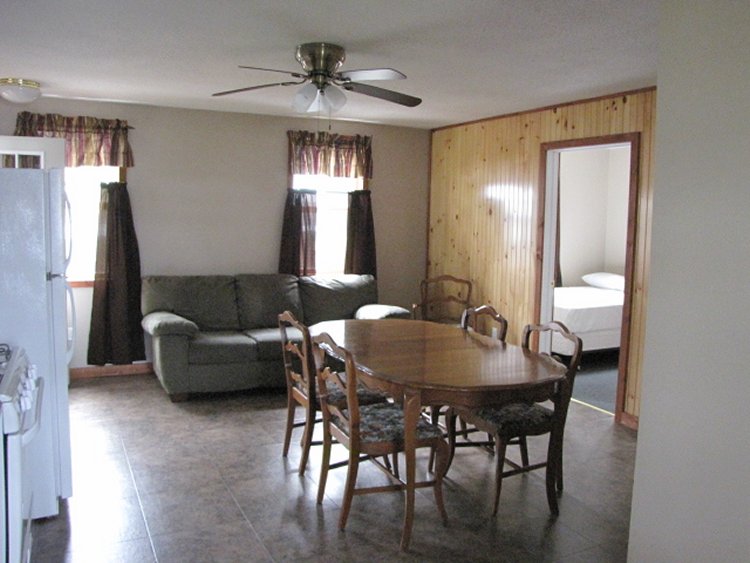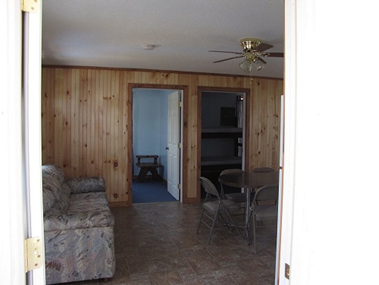 Cottage 5 Sleeps 6 (maximum occupancy) 2-Bdrm cottage w/ full bed in each plus set of bunk beds in one bdrm. Living room. Handicapped-accessible entrance. Open deck. Located on lake front.