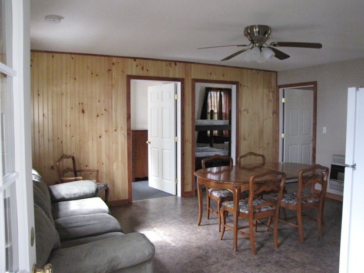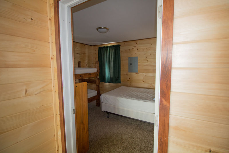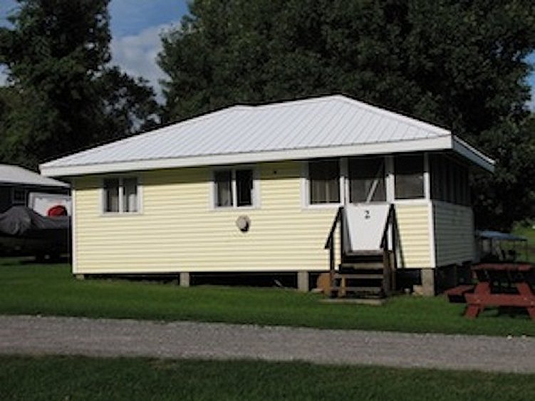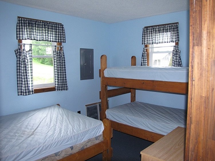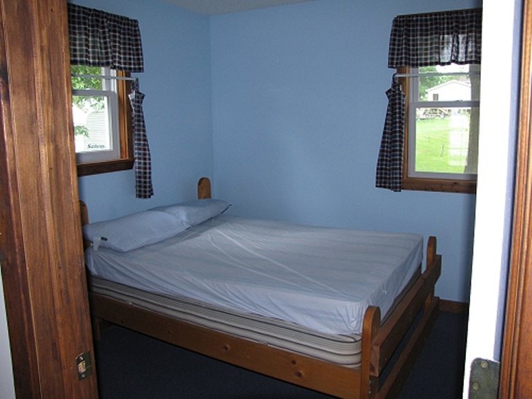 Cottage 1 Sleeps 6 (maximum occupancy) 2-Bdrm cottage w/ dbl bed in each plus bunkbeds in one bdrm. Located away from lake. Enclosed porch.