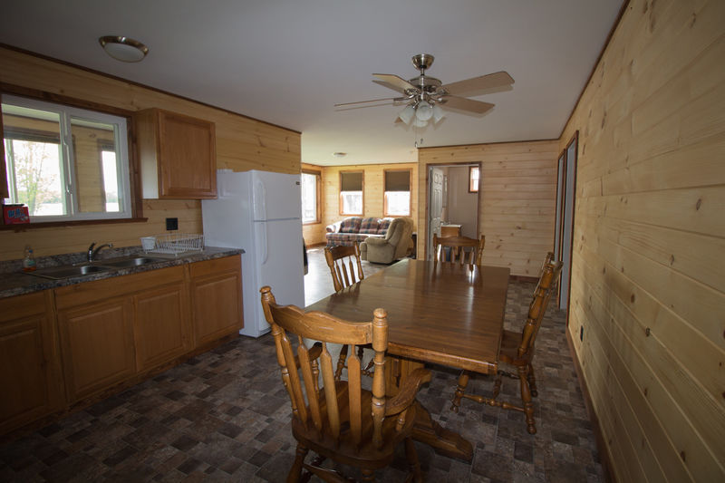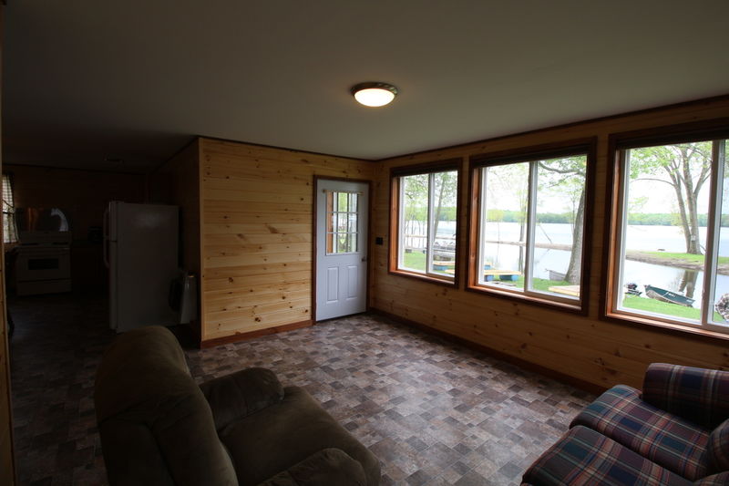 Cottage 8 Sleeps 8 (maximum occupancy) 3-Bdrm cottage w/ full bed in each plus set of bunk beds in one bdrm Spacious kitchen & Living room. Located on lake front. Enclosed porch.